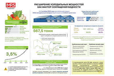 На 1 октября 2025 года в республике действовали 2 011 холодильных складов общей мощностью 1 141,2 тысяч тонн.