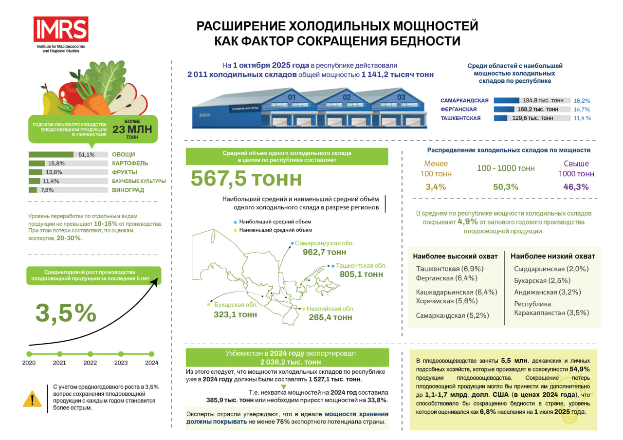 Стимулирование создания новых холодильных мощностей позволит снизить потери урожая в республике и создаст возможности для сельхозпроизводителей увеличить свои доходы при сбыте продукции в несезон.